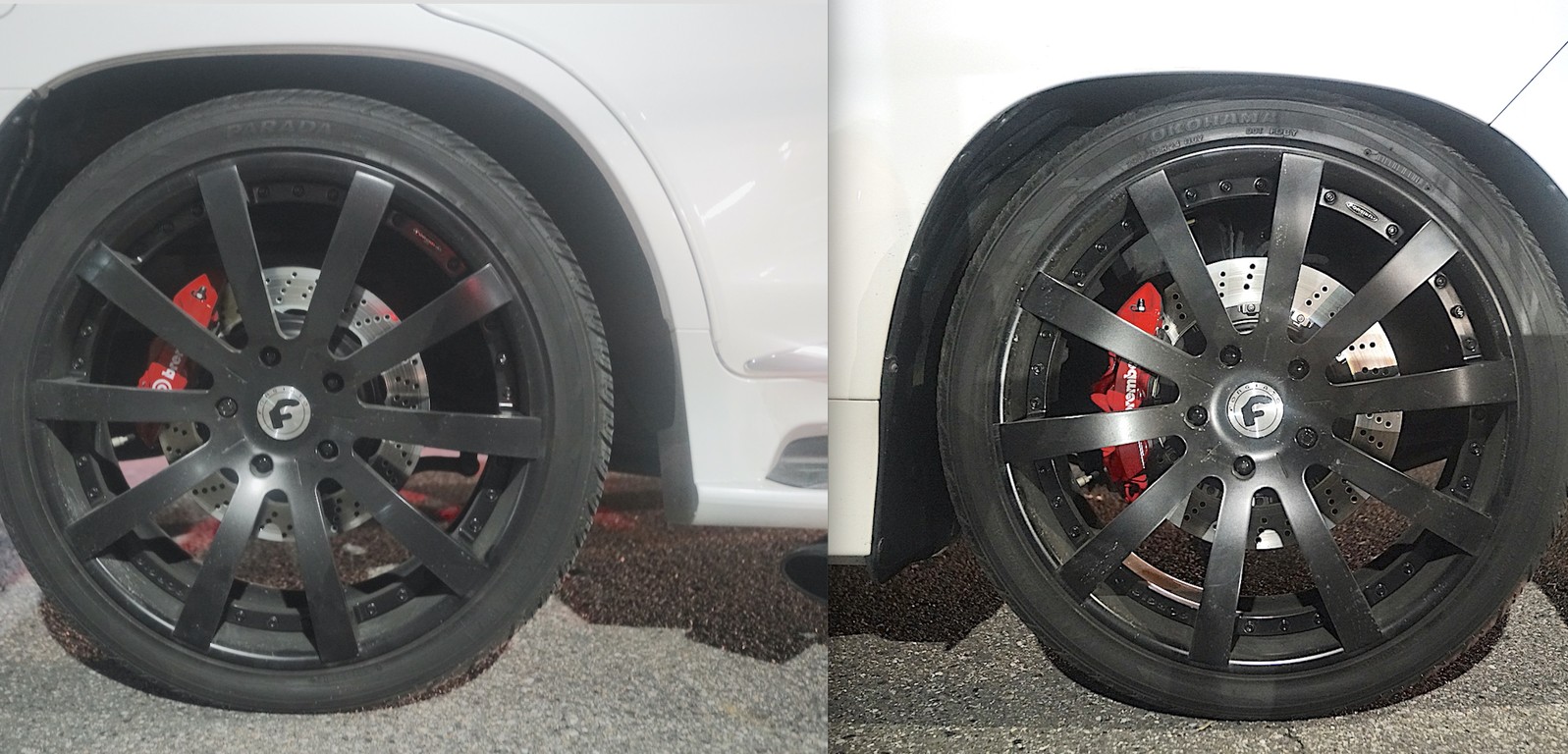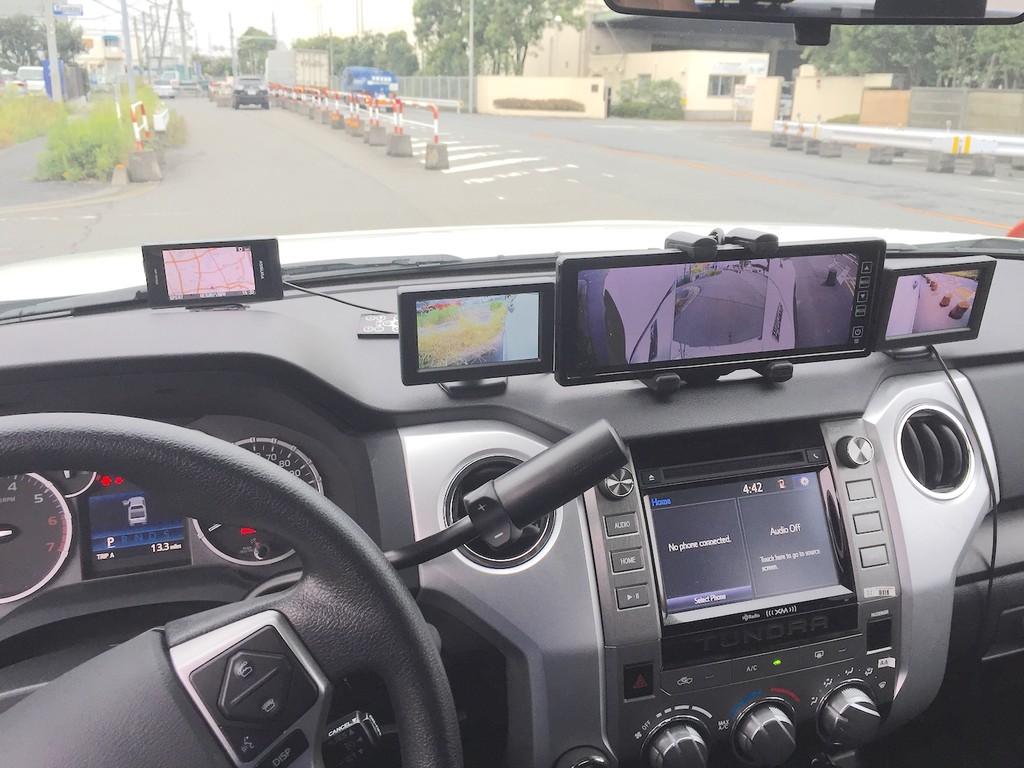 始めはグリルに両面テープで普通に着いていましたが、超ワイドな車両でバンパー角がえぐれて鋭角な形状の為左右の視界に死角が出ています