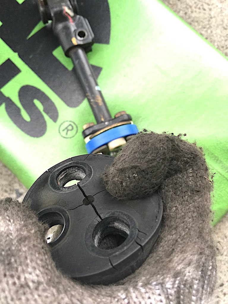 交換前のステアリングラックブッシュ