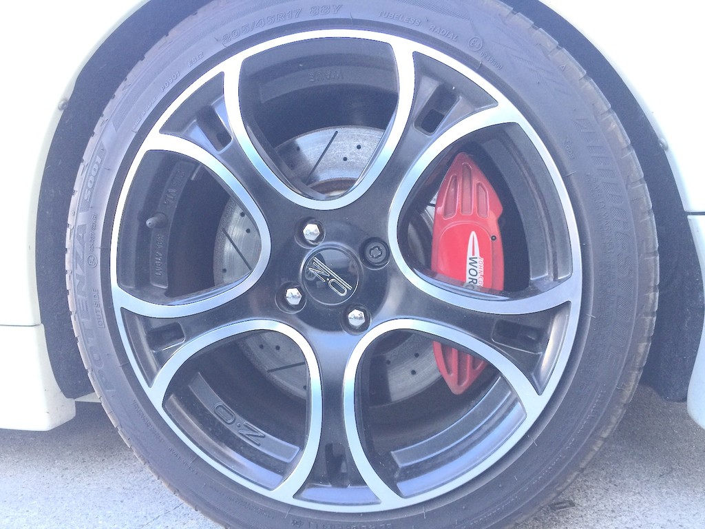 スーパーハイトワゴンのウェイクにブレンボブレーキシステムを専用設計しました。 レース用の小柄で軽量の優れた4ピストンキャリパーを使用し、専用に大径の2ピースディスクを製作してのセットアップです。