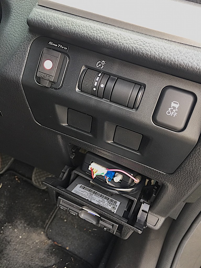 そしてコントローラーは一度設定してしまうとあまり使いませんのでETCの装着されていた小物入れ上部の空きスペースを利用し、設定変更も工具なしですぐに行えるようにしました。
