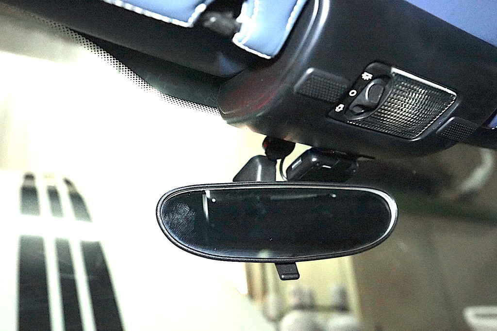 視界を妨げずに視認性を確保し、内装にべたつきを残さないようレーダーはミラーの上部に、本体はダッシュ左上部に配しました。