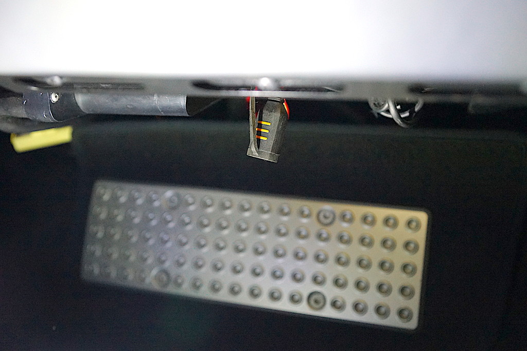 わかりにくいですが、グローブボックス下部にカプラーを配し、カプラーキャップを外すと配線が伸びるようにします。