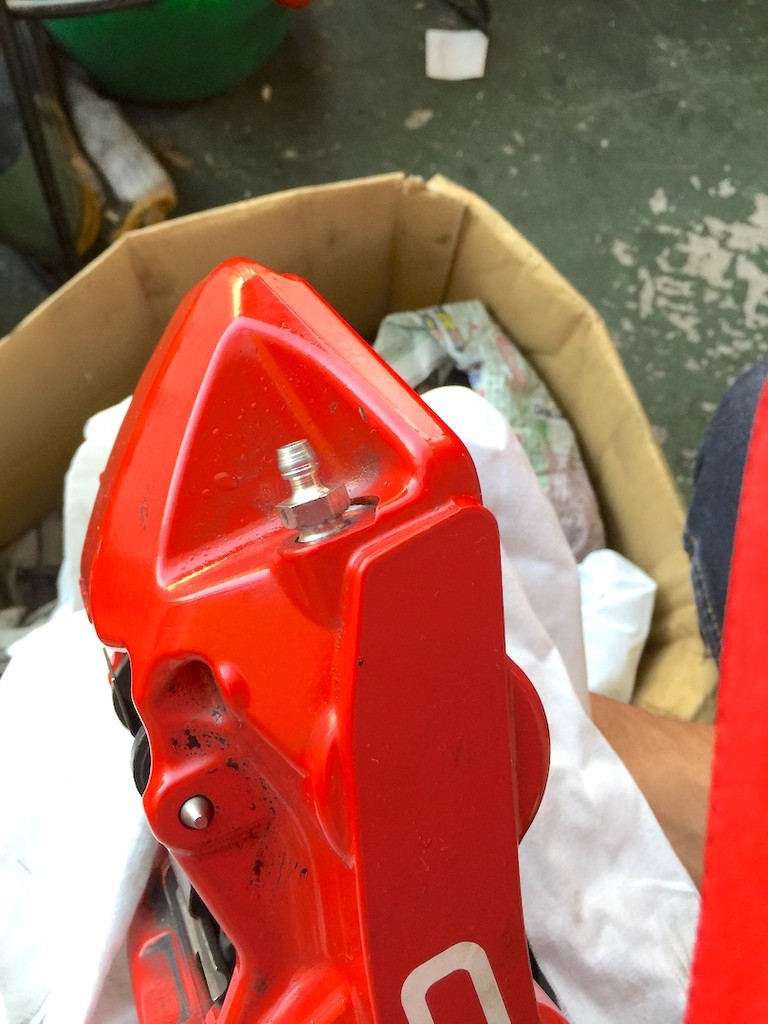 toyota86用TRDブレンボブレーキキットキャリパーのブリーダープラグ破損修理です。