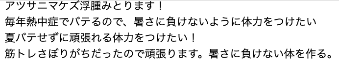 筋トレサボりがちだったので頑張ります。暑さに負けない体を作る。