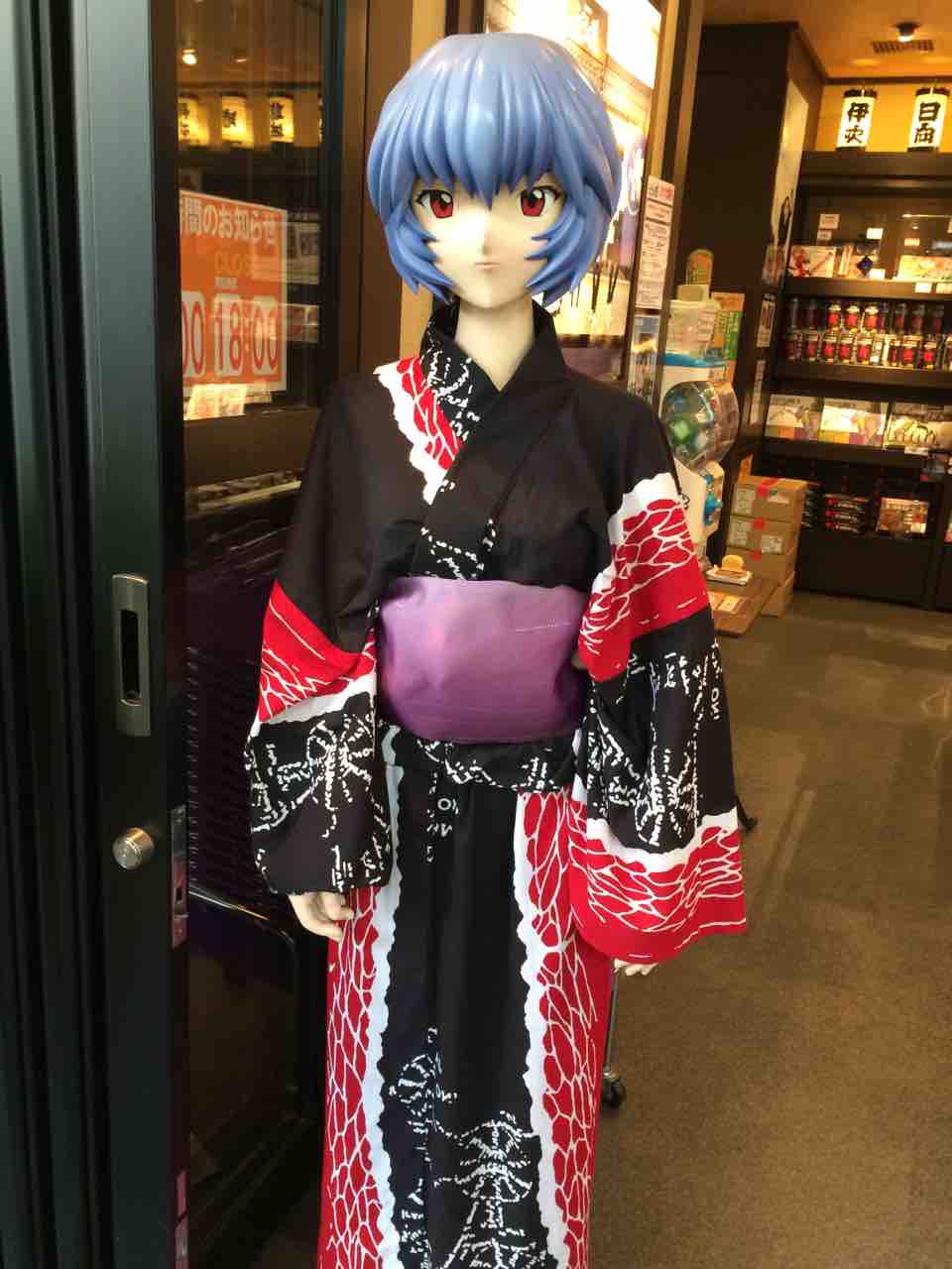 浴衣姿が愛らしい綾波レイちゃんが迎えてくれました。笑顔無く真顔なのはレイちゃんの良さですね♫