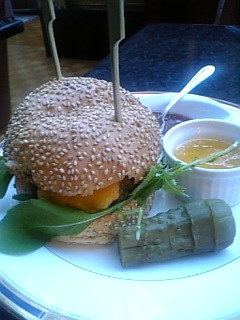 今日のお昼は写真のとおり、ハンバーガーのPLUTO風でした。角に見えますねー。