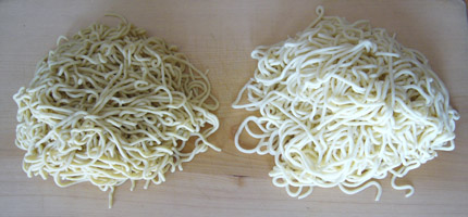 先日作った2種の麺を使ってのつけ麺食べ比べ。