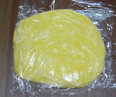少々ムラがある状態でいいらしい。ラップに包んで適当に伸ばして冷蔵庫で寝かせる。