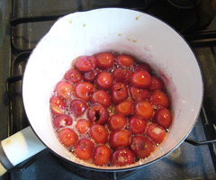 種あり時で200gちょいのチェリーに30gの砂糖を足して鍋で弱火に掛けていく。