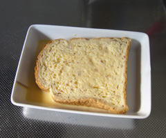 トーストというよりプリンのようにとろける食感で、パン自体のの食感をあまり感じないものになってしまった。