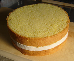 同じ18cmのスポンジ型とセルクルなのだが、大分大きさが違い、スポンジと大きさを合わせてサンド。
