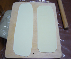 その後二つに分けて綿棒で伸ばしてパスタマシンに通して麺帯を作る。