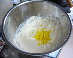 生クリーム200mlに対してゼラチンの投入量を迷いながら5gを使用。すると、舌触りとしてちょっとゼラチンが多いなぁという出来上がりになってしまった。