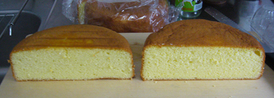 どちらのスポンジもふんわり感は悪く無いが、しっとり感というかぱさつき感が気になり焼き過ぎの気がするので、次はオーブン特製を掴むべく焼き時間の考察を行なうとしよう。