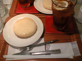 注文してから焼きを入れられるチーズケーキは、パンケーキのようなスポンジの上にデンマーク産のチーズがとろりと溶けている。スポンジの甘みにチーズの塩みとこってり感が交わってなかなか美味い。チーズケーキというよりチーズ乗せケーキで、初めて食べた時はう~んと思ったが、今回は人気があるだけあるかな、これはこれで美味いと思ってしまった。