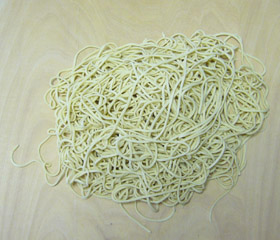 しかしセモリナ粉で作ったものに比べても、やっぱりこっちの方が中華麺という感じで、ラーメンには合っている。もう少し、ハルユタカブレンドの比率を減らして地粉の強みを増やした方がいいかな。