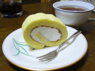 晩飯後のデザートが無いのは寂しい、ということで、ロールケーキを作製。