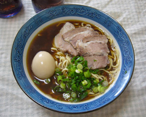 やや太目に仕上げて寝かした翌日、豚骨鶏ガラのノーマルな醤油ラーメンにして食しました。