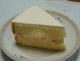 それをスポンジの間に挟んで、周りはノーマルなホイップクリームを混ぜて完成。