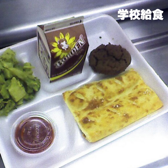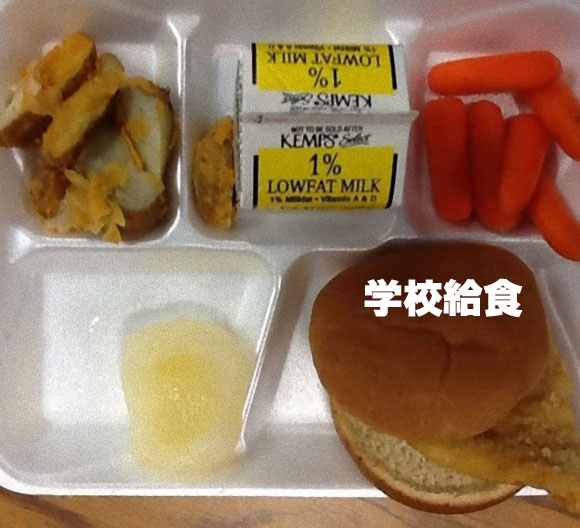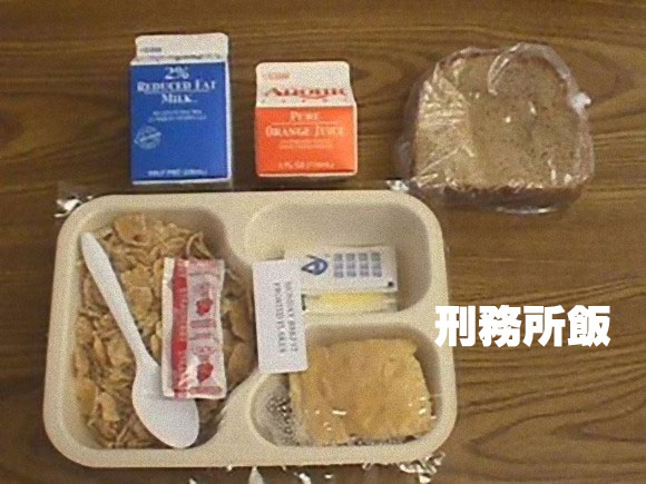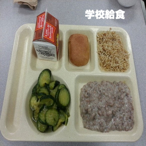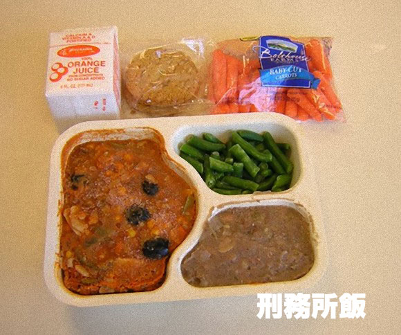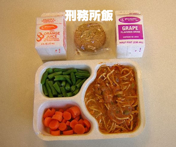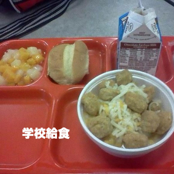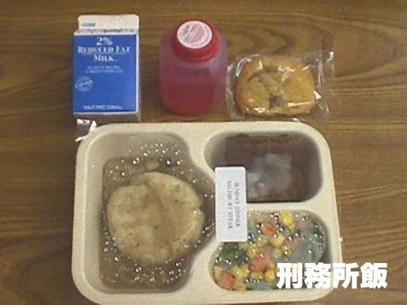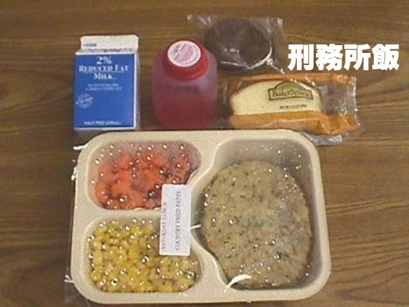 アメリカのスーパーで売られている、1回分の食事が1つになった冷凍食品、通称TVディナーみたいな内容が多かったようだね。日本でも学校給食と刑務所飯って似ているのかな?学校給食は地域によって内容がまったく異なるから一概には言えないかな。