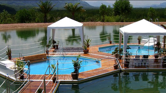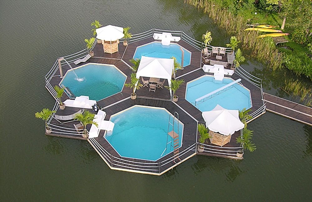 湖の中に浮かせるプール