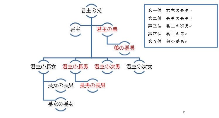 “長女の長男”の将来生まれるであろう男子が位を相続していく事になる」