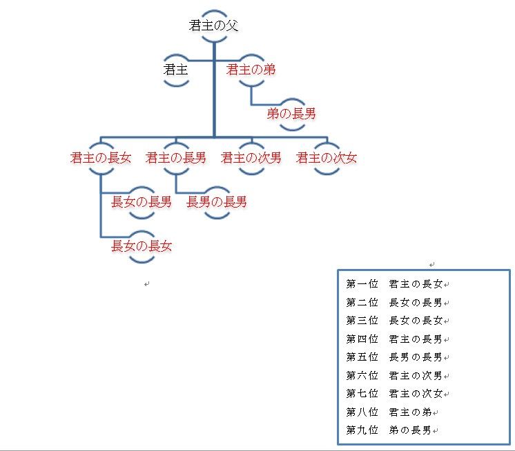“君主の長男”が亡くなれば“長男の長男”が第一位となり“君主の次男”が第二位という具合にな」