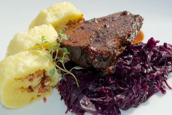 チェコ共和国ではクネードロヴェプショゼロとスヴィチェコヴァーのどちらかがチェコの国民食にふさわしいか議論が続いている。ここではスヴィチェコヴァーを紹介することにしよう。スヴィチェコヴァーは牛肉のサーロインと野菜のクリームソースとパンの団子を盛り合わせた料理だ。美味しいが、少々カロリーが高めである。レモンのスライスとクランベリーを添えて出されることもある。