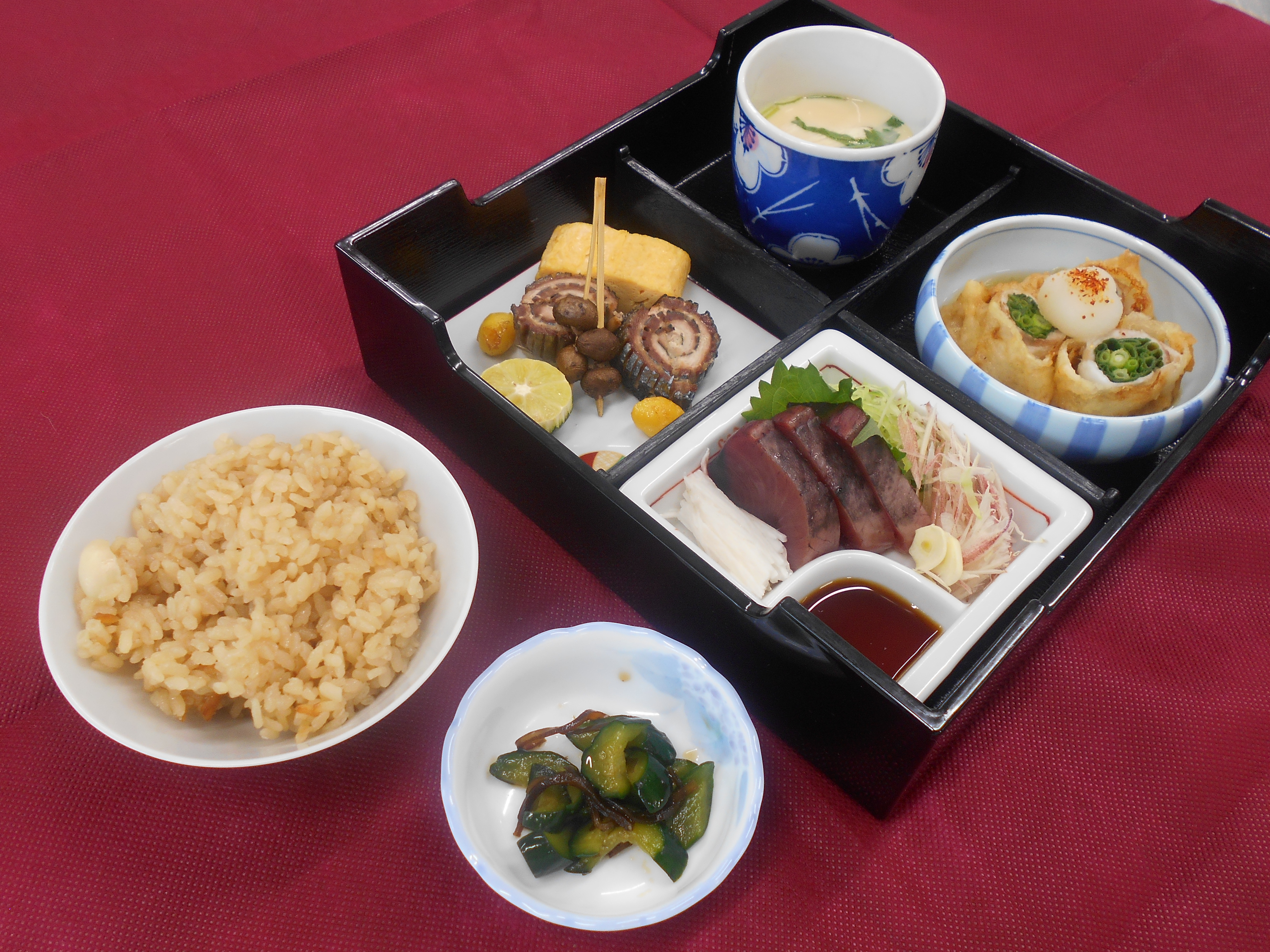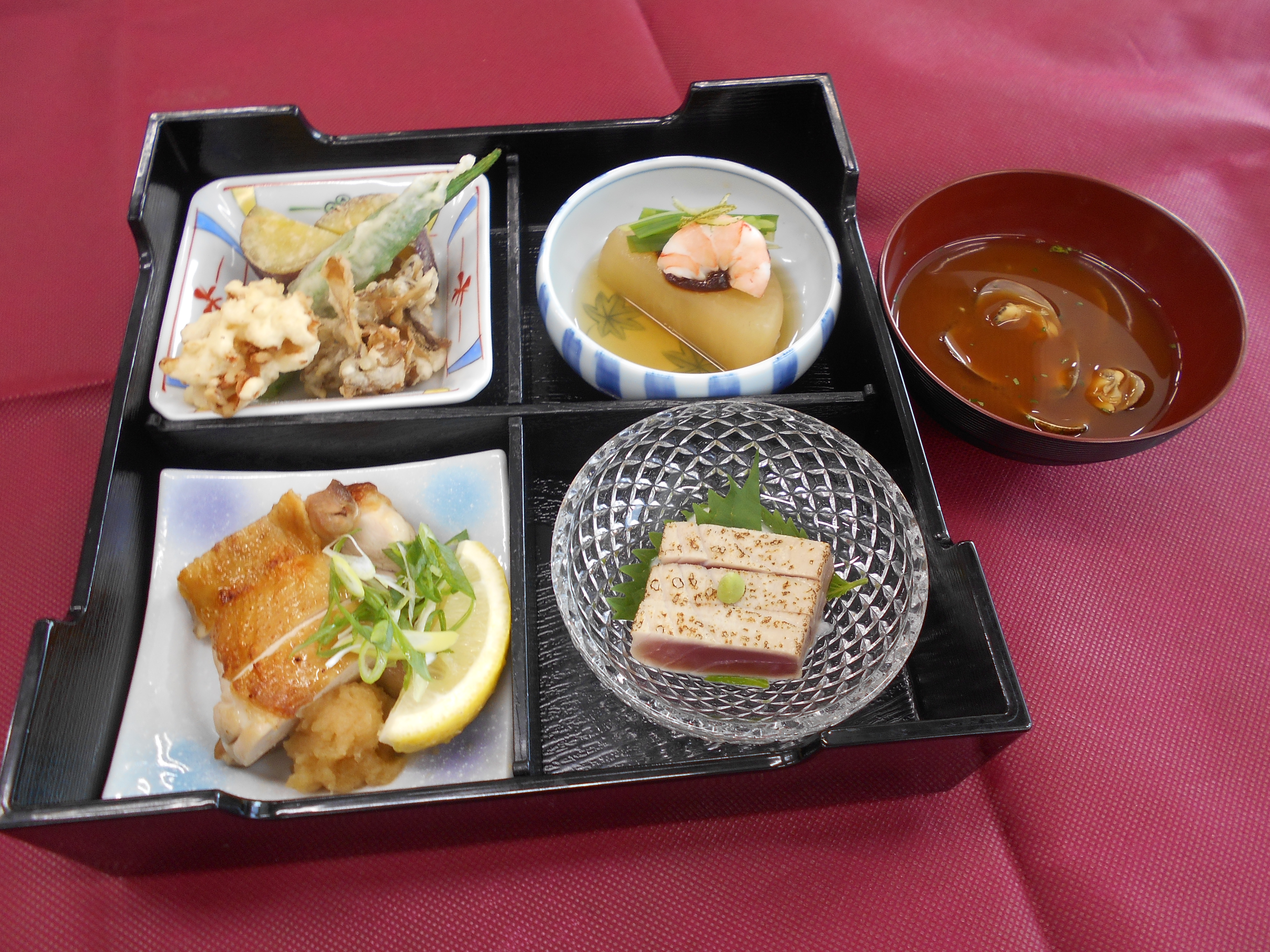 日本料理と中国料理の松華堂ランチと、西洋料理のミニコースランチとそれぞれの特徴を活かして、仕込みから提供までを行います。