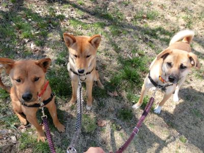 似ている?ここ数日は本当にいいお天気で、春の風を感じながらのお散歩がとっても気持ちよく、ついつい長い方のお散歩コースのほうに足が向いてしまいます。もちろん、木々の花々もすばらしいですが、畑にいろいろな野菜の苗が植が植えられはじめ、『これは何かな?』なんて考えながらのお散歩も楽しいです。この第2期の犬たち3匹はみんな茶色なので、お散歩中にすれ違う人たちに、『兄弟?』と聞かれることもしばしば。顔の特徴は違うけど、大きさも色も似ている3匹なので、そう言われても仕方ないですね。クリックのご協力、宜しくお願い致します!!!+ポチっと応援宜しくお願いします!!!にほんブログ村