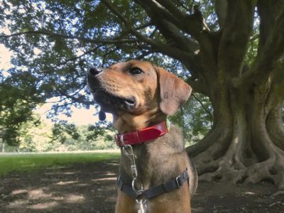 公園内にとても立派な木があり、そこで3匹揃って記念撮影をしようと試みたのですが、やっぱり集合写真は上手に撮れず、結局一匹ずつの写真になってしまったのが、少々残念でしたが、インストラクターも犬たちと一緒にいい時間を過ごすことができました。