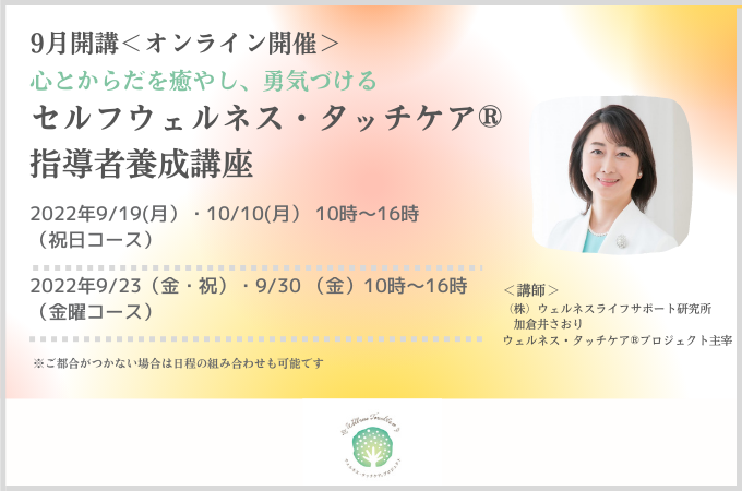 (赤ちゃんから高齢者まですべての人へウェルネスタッチケア®を伝えていただけます)*セルフウェルネスタッチケア®は含まれません。