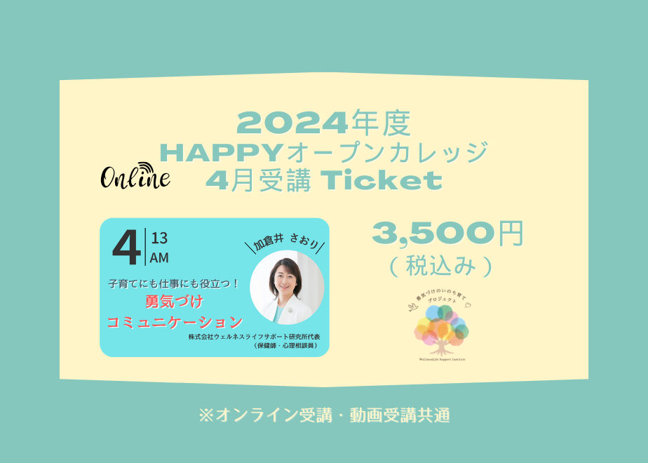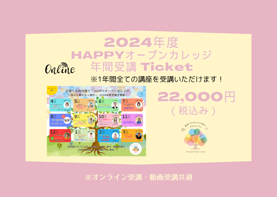 2024年度「子育て&自分育て!HAPPYオープンカレッジ」の年間申込割引チケットもこちらで申込受付中です!【3月31日まで】