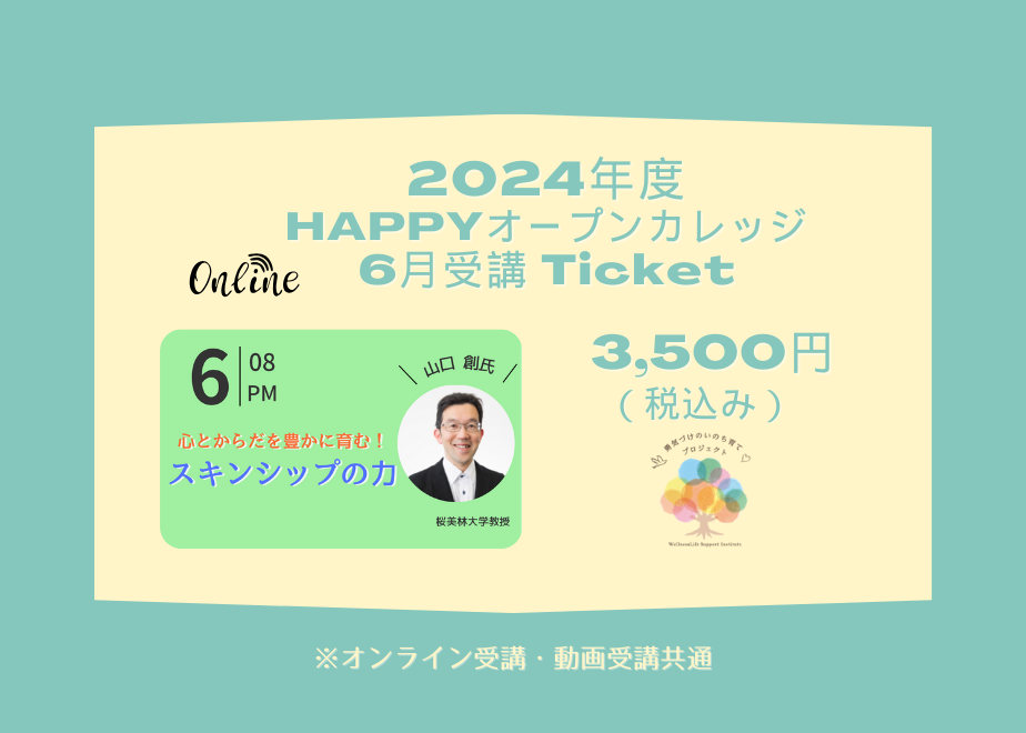 そして山口先生には、今年も6月8日に子育て&自分育て!HAPPYオープンカレッジで「心とからだを豊かに育む!スキンシップの力」をテーマにオンライン登壇頂きます!