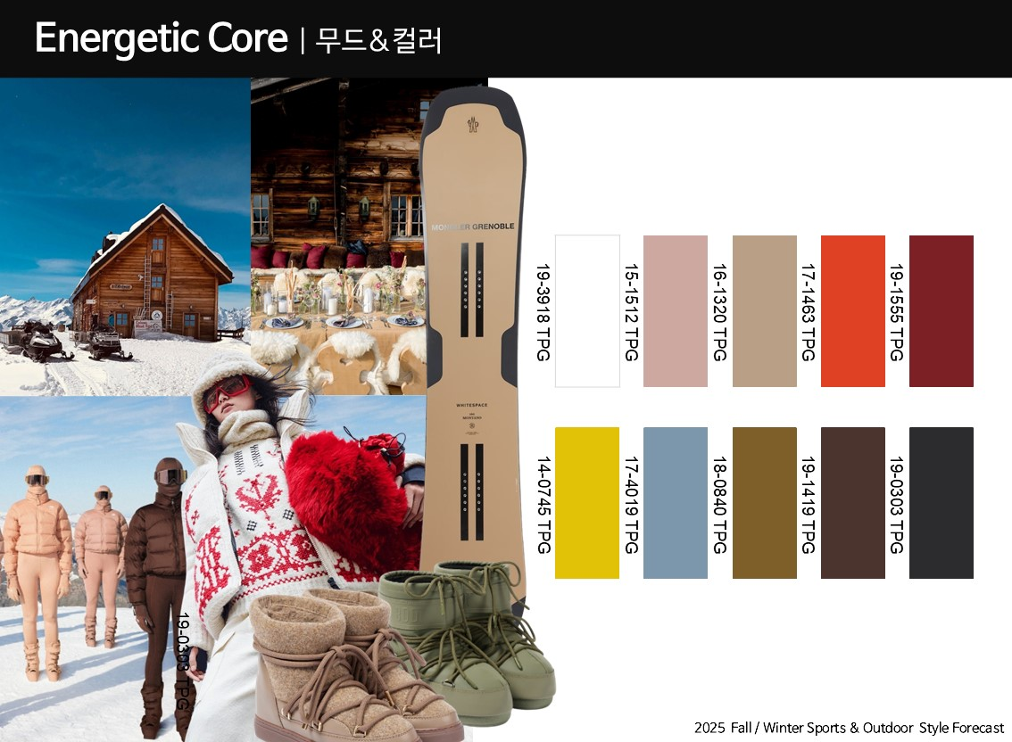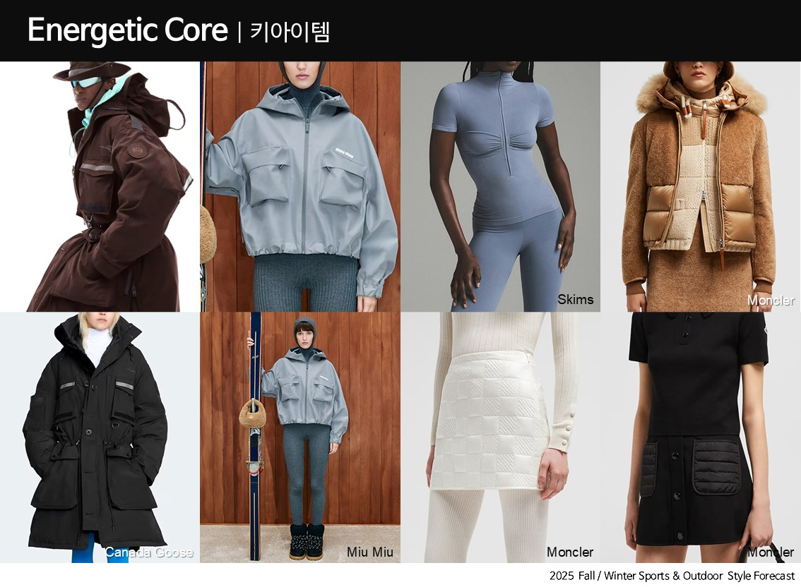 スキーウェアや冬用パディングアウターを基に、スリムなボディースーツやレトロなスキーブックからインスパイアされたカラーとグラフィックを組み合わせたスタイルが提案される。基本となるコアアイテムをカラー、パターン、素材、プロポーションに変化を加え、より面白く多様に活用できるようにする。ミニマルで未来的な雰囲気と、北欧風セーターの日常的な暖かさが融合される。