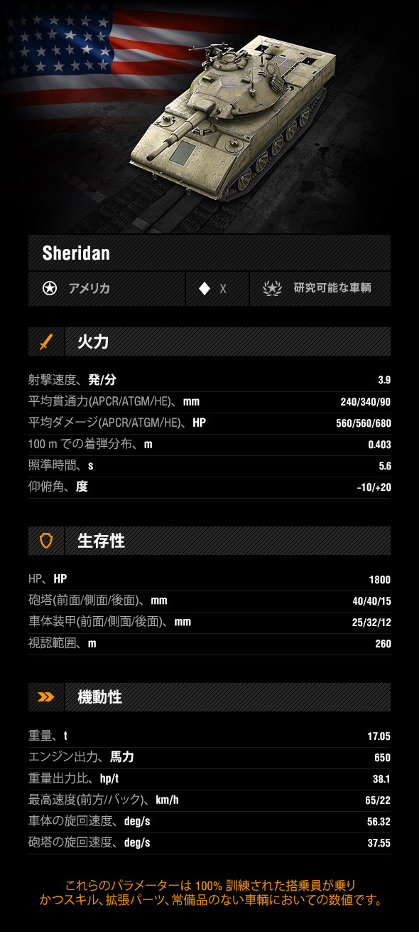 言うべきことはこれだけです。1トン当たり 38 馬力、最高速度 65 km/h。Sheridan はドラッグレースに勝つことさえできます! 「そんなわけあるか!」とナメてかかると、ATGM をお見舞いされることになります! フハハハ!