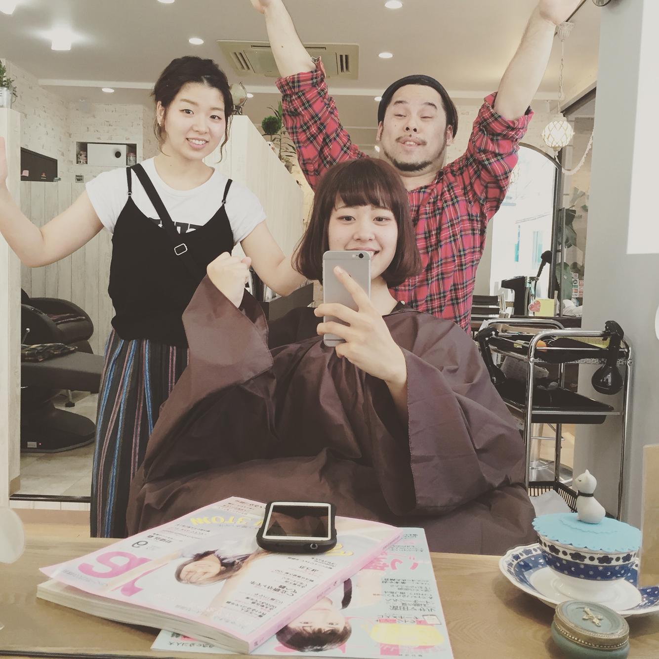 と言うことで、肩に付かない位の長さのボブ