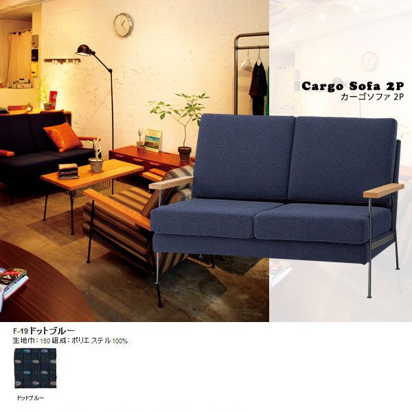 ソファー 2人掛け ソファ 北欧 リ2人掛けソファー ビングソファ ファミリー ダイニング 書斎 オフィス カフェ アンティーク ミッドセンチュリー モダン ラブソファ 布張り SWITCH スウィッチ カーゴソファ2P Cargo sofa 2P F-19ドットブルー 肘/レッドオーク無垢材 送料無料
