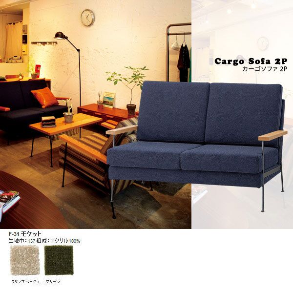 ソファ 北欧 ソファー 2人掛け 2人掛けソファー リビングソファ 2P ファミリーソファー ダイニング 書斎 オフィス カフェ ミッドセンチュリー モダン おしゃれ ラブソファ SWITCH スウィッチ カーゴソファ2P Cargo sofa 2P F-31モケット 肘/レッドオーク無垢材 送料無料