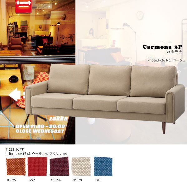 ソファー 3人掛け リビング ソファ 3人掛けソファー 大型 ワイド カフェ 北欧 リラックス 鑑賞 シアター 応接 ナチュラル モダン 3Pソファー ダイニングソファー ファミリー ダイニング リビングソファ 布張り SWITCH スウィッチ カルモナ Carmona 3P F-22ロッサ 送料無料