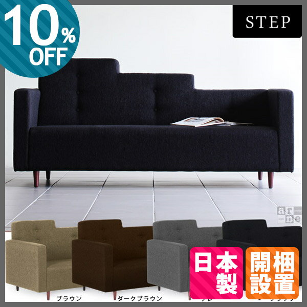 ソファ 3人掛け 3人掛けソファー 2.5人掛け ソファー 脚 3P リビングソファ 北欧 カジュアル カフェ モダン リラックス 個性的 デザインソファ おすすめ 応接 デザイナーズ 布張り STEP ステップ ブラウン ダークブラウン グレー ブラック ファブリック 送料無料 【RCP】