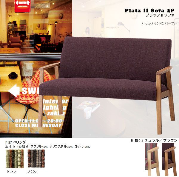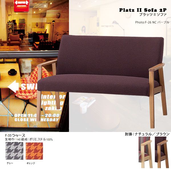 ソファー 2人掛け プラッツ2ソファ platz sofa 2P F-34アルメリア 肘掛けNA/BR SWITCHの高品質ソファー ソファーベンチ リビングソファ 2人掛け 北欧 モダン レトロ おしゃれ 家具 カフェ部屋 書斎 デザイナーズ 布張り 新生活 ラブソファ アームチェアー 送料無料 【RCP】
