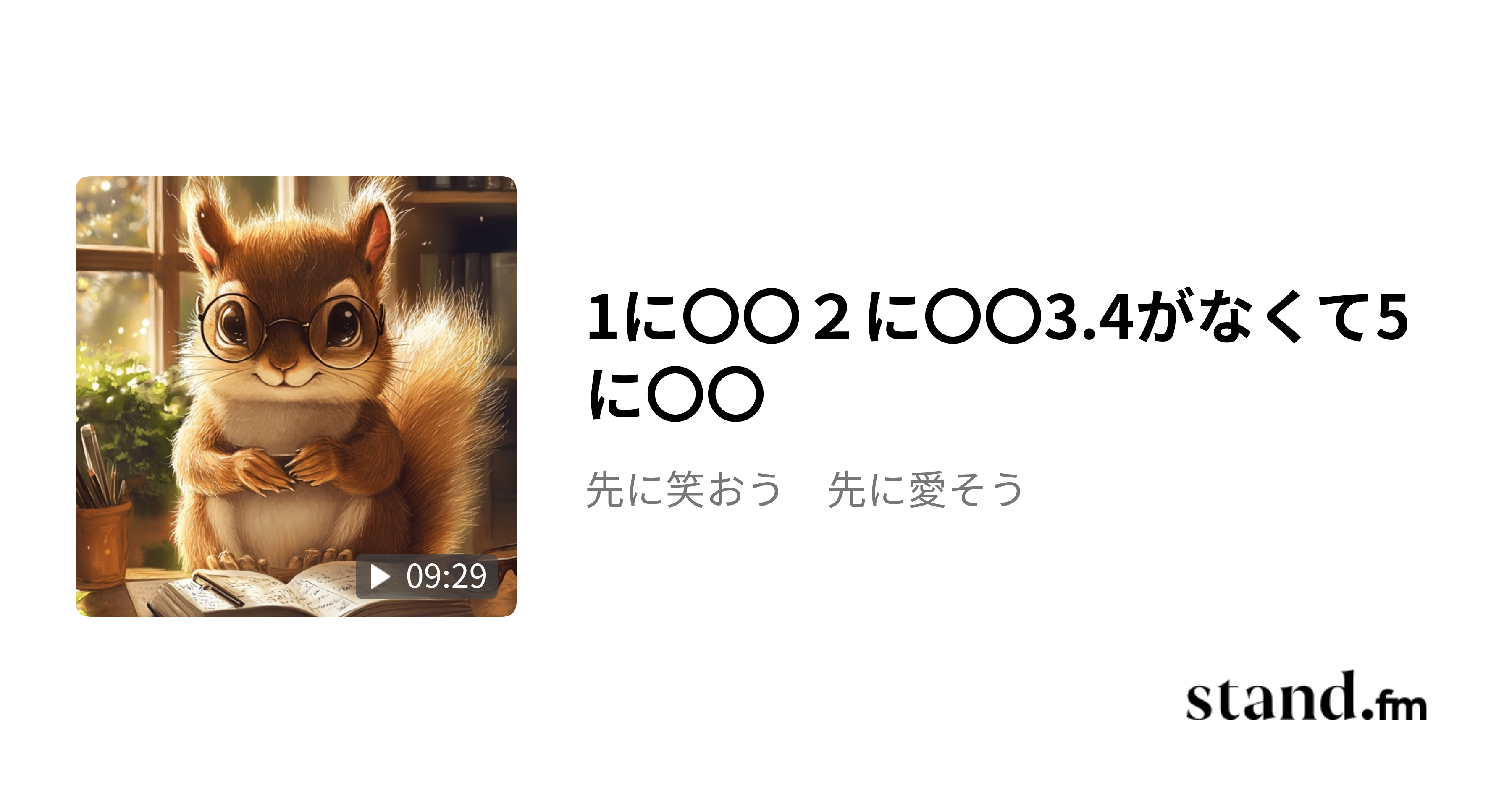 1に〇〇2に〇〇3.4がなくて5に〇〇 - 先に笑おう 先に愛そう | stand.fm#1.5倍速がおすすめ #すきあらばニーチェ #ソフト哲学#今日の朝ごはんは、目玉焼き🍳と🥯ベーグル食べたよ#今日こそ、衣替え整理🧹する#自分朝礼#仲良くなりたい#モテたいstand.fm