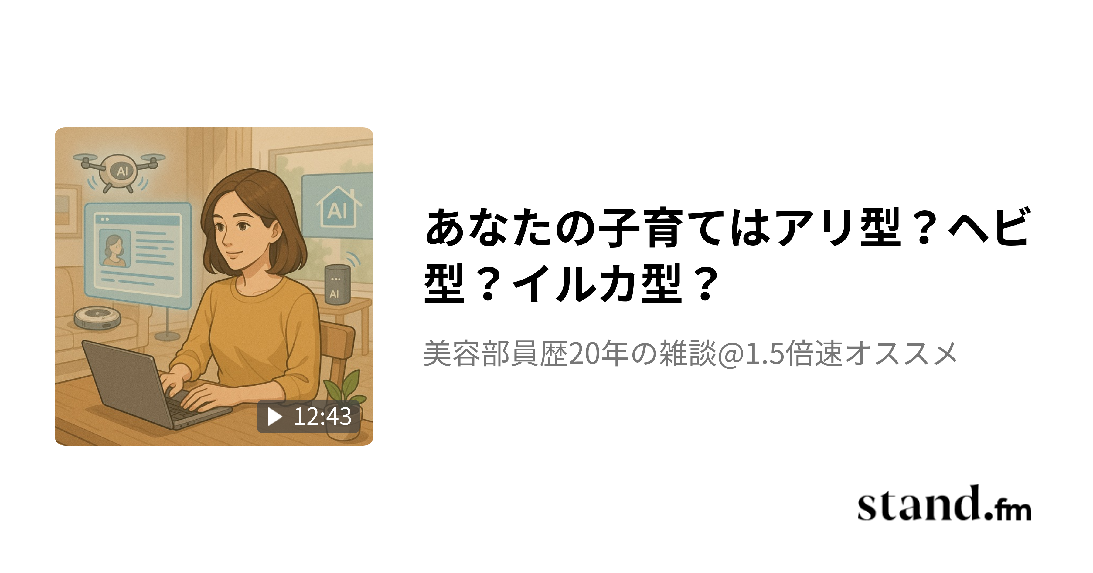 あなたの子育て どこから?あなたの子育てはアリ型?ヘビ型?イルカ型? - 美容部員歴20年の雑談@1.5倍速オススメ | stand.fm#自由な発想 #子育て #迷ったら動物に聞けシリーズ #ワーママ #stand.fm雪が溶けたら水になる雪が溶けたら春がくる雪がとけたら思い出すみんな違ってみんないい
