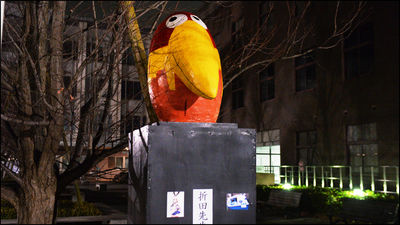 大学の前に違う大学のマスコット像を置くと5時間で破壊される - GIGAZINE