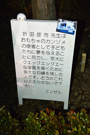 折田先生像の隣りに立てられている看板はこんな感じ。気のせいか、かなりクエックエックエ~です。