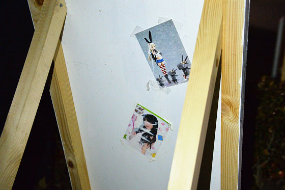 この看板の裏面にはアイドルと艦これの島風の写真が貼ってあります。