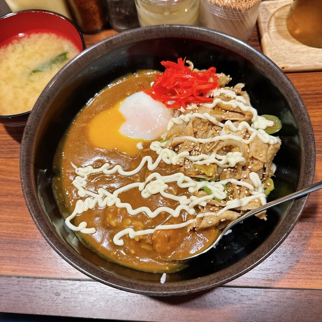 でこの日食べたのんが「豚丼照焼生姜 生卵別売り計¥710」