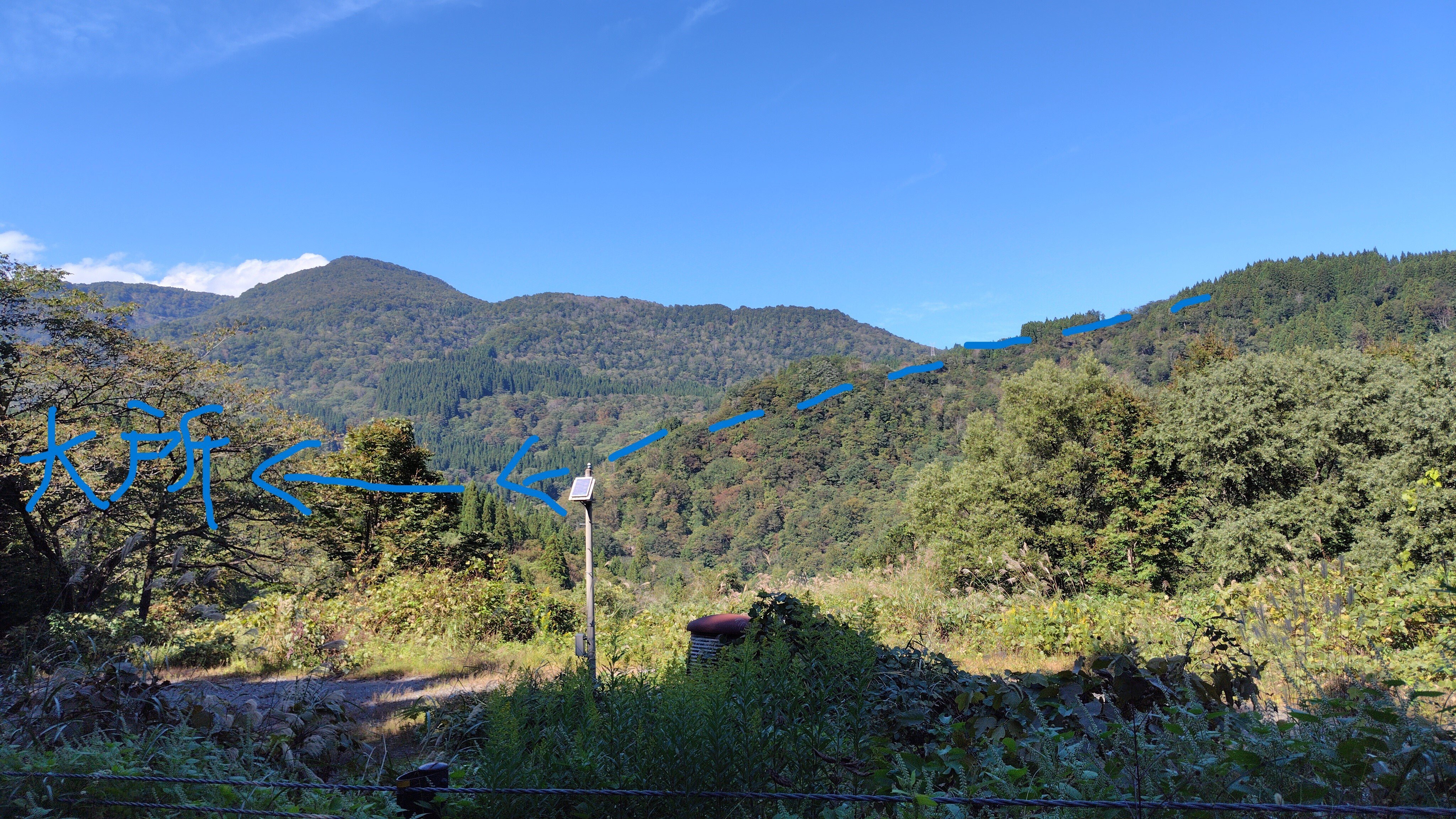 下の写真は、来た道の途中で、平岩方面を振り返った景色です。