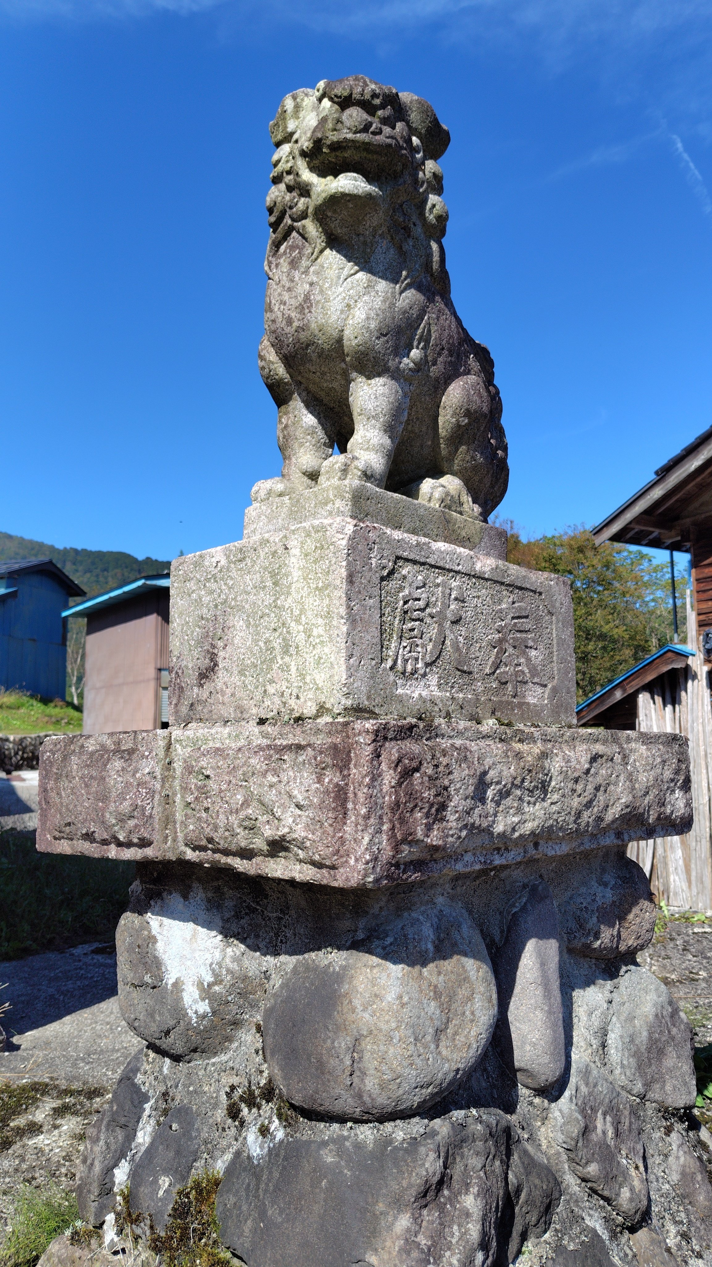 右の狛犬殿が、大空に吠える感じで、とっても良い元気を感じます。